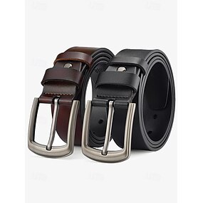 klassisk skinnbelte for menn – slitesterkt brunt og svart belte med metallspenne for fritids- og formell bruk