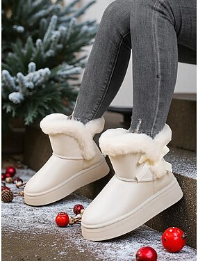 Hvite vinterstøvler med pelskant og sløyfedetaljer til dame, stilige og koselige snøstøvler for kaldt vær og høytidsklær