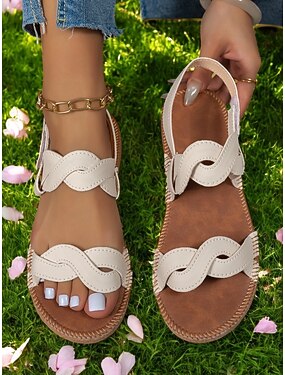 kremfargede peeptoe-sandaler til dame – pustende laserskåret design, avslappet stil for vårturer, reiser og hverdagskomfort