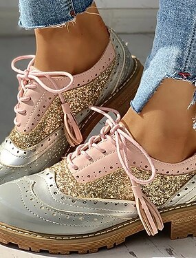 kvinners rosa og grå glitter oxford-vingetippsko med tykk såle - stilige snørebrogues for casual og statement-antrekk
