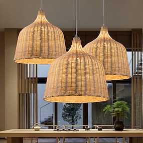 Landlig kunstnerisk pendellampe, rottingmateriale, 16 cm høyde, varmt hvitt/hvitt lys, e26 e27, justerbar kjede