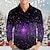 Herre Galakse Abstrakt Polo Langermet Poloskjorter Knaphul Fritid utendørs Gate treningsklær Dagligdagstøy 3D-utskrift Knapper Vår Høst Vinter Blå Lilla Oransje