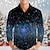 Herre Galakse Poloskjorter Golf poloskjorter Langermet Poloskjorter Krage Fritid Festkveldsklær Hverdag Feriereise Knapper 3D-utskrift Blå