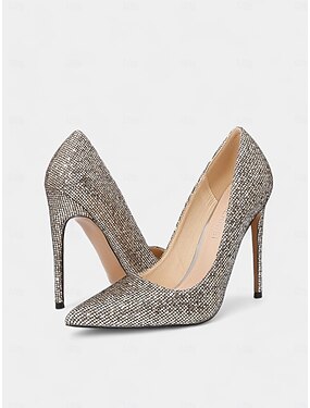 damesko med gullglitter og spisse tå – elegante pumps med høy hæl og stropper til formelle arrangementer og utelivsfester