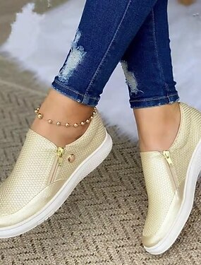 slip-on joggesko i gull for kvinner – glitrende fritidssko for mote og hverdagsbruk