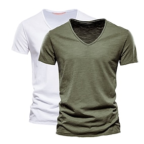 Herre T skjorte T-skjorte Kort Erme V-hals Sommer عادي Mote Designer Grunnleggende V-hals Multipakke Feriereise Gate Ut på byen Hvit+Svart Hvit og Blå Oransje / Grønn Topp T-skjorte for menn