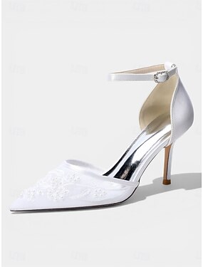 Lilla sateng pumps med spiss tå og ankelrem til dame, til cocktailfest og bryllup &kveldsarrangementer