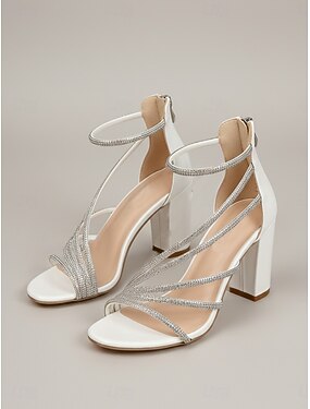 Damesandaler med blokkhæl og strass, ankelomslag med tykke hæler til cocktailfest og skoleball &kveldsarrangementer
