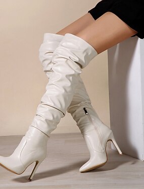 hvite over-kne-støvletter med stiletthæl for kvinner – sexy høyhælte lår-høyt motesko for kvelder og fester