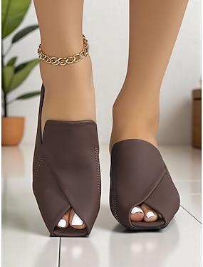 kvinners peep toe muldyr – brettet design av kunstskinn mulesko for moderne arbeidsstil