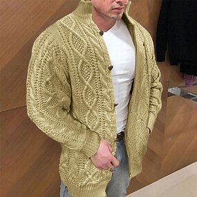 Herre Kjole genser Cardigan Genser Kabel Strikke Strikket Helfarge Høy krage Stilfull Fritid utendørs Hjem Klær Høst Vinter Svart Rød S M L