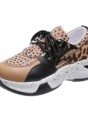 sneakers med leopardmønster for kvinner - fritidssko med snøring og tykk såle for stilig hverdagsbruk