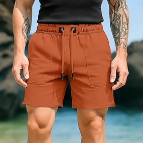 Herre Svette shorts Shorts Bermudashorts Strandshorts Snorer Elastisk midje عادي Komfort Sport Knelengde utendørs Avslappet Daglig Ferie Mote Svart Oransje Mikroelastisk