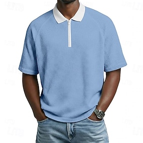Herre Vaffel poloskjorter Zip Polo Avslappet Ferie Knaphul Quarter Zip Kortermet Mote Grunnleggende عادي Quarter Zip Sommer Vår Normal Svart Hvit Navyblå Lilla Grønn Kakifarget Vaffel poloskjorter