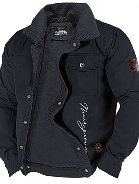menns brevtrykt brodert fleecejakke sherpa trucker jakke arbeid cargo jakke turn-down krage varm vinter bomullsjakke vintage casual gå ut jakke multilommer