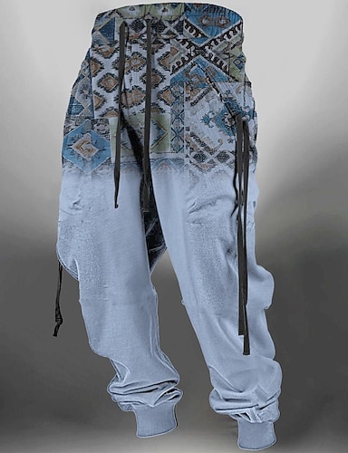 Herre Etnisk Joggebukser Jogger Bukser Medium Midje Elastisk midje med snøring Årgang Fritid Stamme utendørs Gate Hverdag Lomme Vår Høst Vinter 3D-utskrift Blå Kakifarget