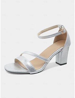 Sølvfargede damesandaler med åpen tå og hæl – elegant minimalistisk design for romantiske dater og sommerkvelder