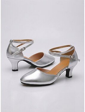 Dames sølvfargede platåsandaler med blokkhæl, pensko med t-stropp og kraftig hæl til cocktailfest og skoleball &kveldsarrangementer