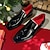 sorte oxfordsko i lakk for menn – skinnende snøresko med rødt fjærmønster for bryllup og formelle arrangementer
