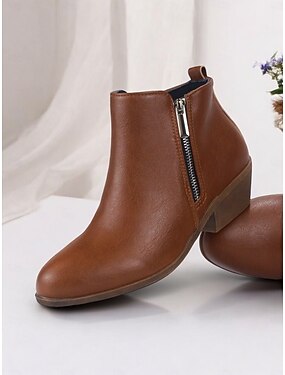 brune ankelstøvletter i kunstskinn med glidelås i siden | komfortabel og stilig for hverdagsbruk