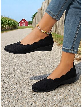komfortable strikkede ballettsko for kvinner – pustende slip-on runde kilesko for fritids-, kontor- og reiseklær