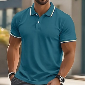 Herre Polo Poloskjorter Avslappet Feriereise Knaphul Kortermet Mote Moderne عادي Knapper Ren Sommer Vår Normal Sjø blå Svart Hvit Gul Rosa Rød Polo