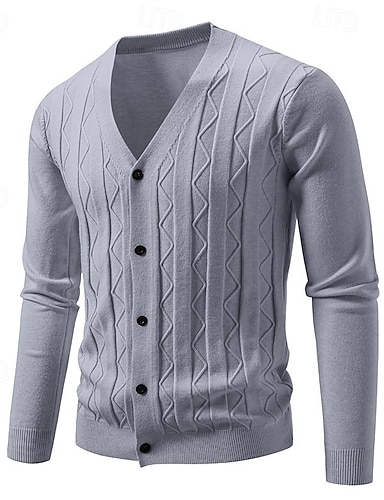 Herre Genser Cardigan Genser Riflet Strikke Vanlige topper Knepp opp Geometrisk Buet Ferie Mote Avslappet Dagligdagstøy Klær Vinter Kakifarget M L XL