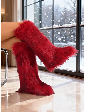røde pelsforede ankelstøvletter for kvinner i retrostil med blokkhæl - perfekt for vinterferier og julefeiringer
