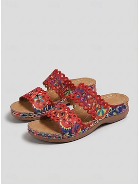 Røde blomstersandaler til dame – pustende, komfortable tøfler med åpen tå, lette, avslappede sommersko for ferie, hage, strand &daglig bruk