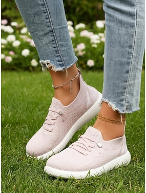 Rosa damesko med bred strikk – pustende, lette og komfortable joggesko med polstret sklisikker såle, uformelle sportssko for reiser, turgåing, utendørs og hverdagsbruk