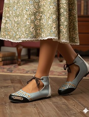 vintage flate sko med snøring for kvinner – uthult retro semsket fritidsballettsko for daglig bruk