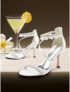 hvite ankelreim sandaler med høy hæl – glamorøse ball- og brudestiletter for kvinner