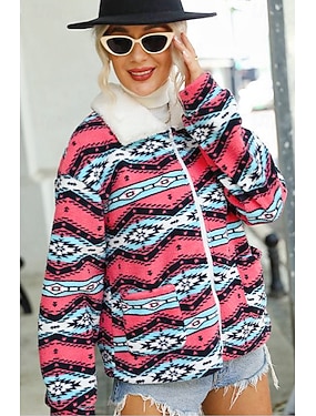 Dame Fleece-jakke Uformell jakke Bekvem Pustende Lomme Trykt mønster Fritid Blomstret Feriereise Gate Avslappet Dagligdagstøy Glidelås Normal Aftæpning Løstsittende Langermet Yttertøy Svart Rosa Blå