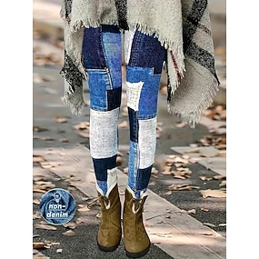 Dame Bukser Leggings Koselige leggings Ferie Årgang Gatemote Full lengde Naturlig Grafisk Lapper Snorer Lapper Elastisk midje comfy Utendørs Bekvem Høy Elastisitet utendørs Feriereise Gateklær Bl