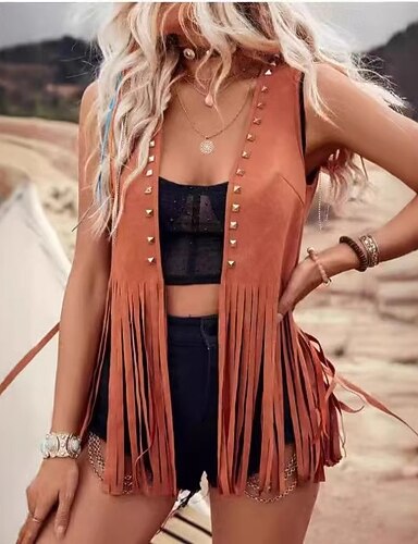 Retro / vintage Bohem 1970erne Semsket vest Hippie Frynser Kostyme Dame Karneval Fritid / hverdag Pride-parade Pride måned Voksne Vest Alle årstider