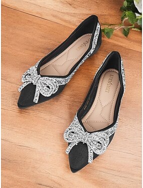 svarte leiligheter med sløyfedetalj - elegante spisse sko for kvinner - behagelige for bryllup eller fester