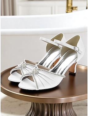kvinners hvite sateng peep toe hæler med rhinestone ankelstropp – elegant cocktailparty og bryllupssko for kveldsfeiringer