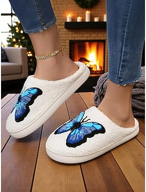 Damesko med sommerfuglmotiv – myke vintersko til innebruk for soverom, stue og egenpleieøyeblikk