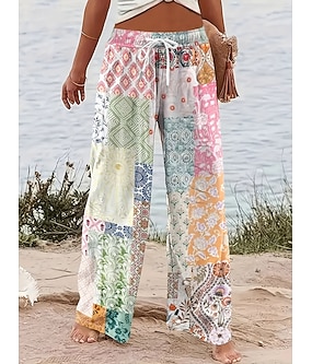 Dame Bred Bukseben kinesisk Posete bukser Strandshorts Ferie Årgang Mote Full lengde Høy Midje Grafisk Geometrisk Paisly Printer Mikroelastisk Avslappet Daglig Feriereise Rosa Blå Lilla Grønn Sommer