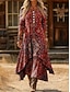 Dame Midikjole T skjortekjole Kjole med A-linje Ferie Fritid Bohem Daglig Ferie Stevnemøte Normal Blomstret Grafisk Geometrisk Langermet V-hals Mørkebrun Hvit Rusten rød Rød Høst Vinter