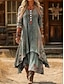 Dame Lang kjole Maxikjole Uformell kjole Sommerkjole Boho-kjole Stilfull Fritid Feriereise Daglig Stevnemøte Normal Geometrisk 3/4 ermer Crew-hals Hvit Navyblå Grønn Sommer