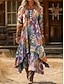 Kvinnenes Midi Kjole V-hals Lange Ermer Kaftan Lett Loose Fit Skift Kjole Casual Utendørs Loose Fit Grafisk Geometrisk Abstrakt Lange Ermer V-hals Blå Lilla Oransje Grønn Høst