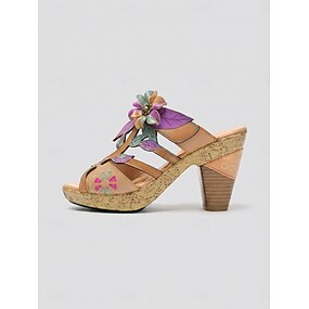 Kamelskinnsandaler med blomsterhæl til dame – håndlagde sandaler med åpen tå og 3D-blomsterdesign i stil med trykk, vintage korkhælsko til sommer, hagefester og reiser &fritidsklær