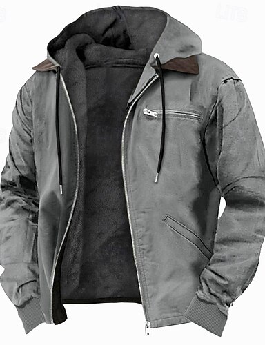 Herre Hattetrøje Hettegenser med full glidelås Sherpa Linend Militærgrønn Blå Brun Grå Med hette عادي Lomme Sport & Utendørs Daglig Ferie Polyester Årgang Gatemote Fritid Høst vinter Klær Gensere