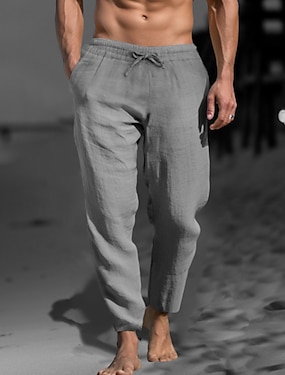Herre Linbukser Bukser Sommerbukser Posete bukser Strandbukser Elastisk midje Snorer Rett ben عادي Komfort Pustende Full lengde Avslappet Daglig Ferie Ferie Mote Svart Hvit