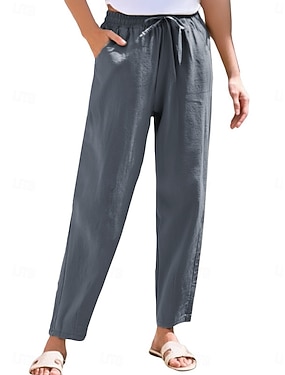 Dame Linbukser i bomull Sommerbukser Bukser Fritid hverdag Ankel-lengde عادي Sidelommer Elastisk midje Pusteevne Bekvem Uelastisk Helg Blå Hvit Kakifarget Grå Vår sommer Normal