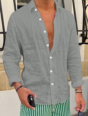 Herre Skjorte Linskjorte Popover skjorte Uformell skjorte Skjorte i bomullslin عادي Gateklær Feriereise Blå Svart Kakifarget Grå Langermet V-hals Vår & Vinter Klær Lomme