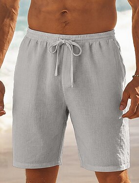 Herre Shorts Lin Shorts Sommershorts Strandshorts Snorer Elastisk midje Rett ben عادي Komfort Pustende Knelengde utendørs Virksomhet Daglig Mote Klassisk Stil Svart Hvit