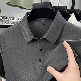 Herre Polo Business Polo Avslappet Virksomhet Knaphul Kortermet Mote Moderne عادي Knapper Ren Sommer Vår Normal Svart Hvit Lilla Grønn Kakifarget Grå Polo