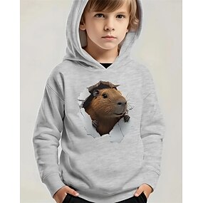 Gutt 3D Dyr Hattetrøje Langermet Vår Høst Mote Gatemote Barn 4-12 år Med hette utendørs Avslappet Daglig Normal